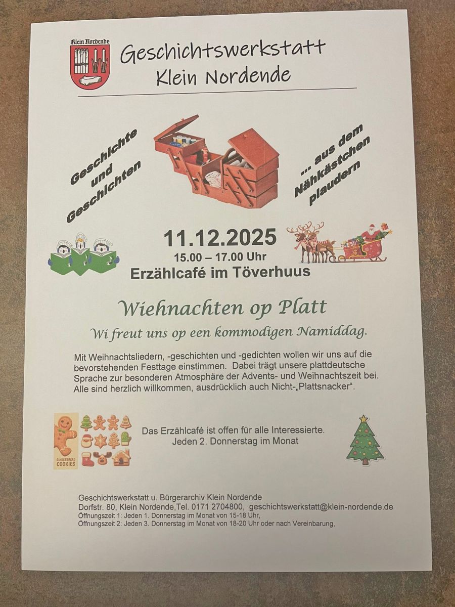 Wiehnachten op Platt beim Erzählcafe auf der Diele im Töverhuus am 11. Dezember 2025