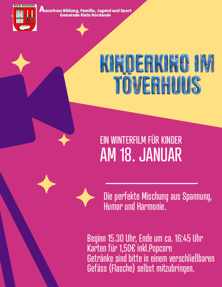 Zum Start ins neue Jahr bieten wir euch wieder einen tollen Filmnachmittag mit uns und euren Freunden im Töverhuus.