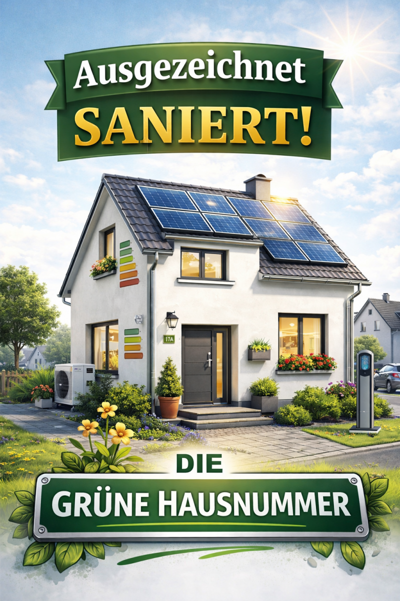 - eine individuelle Grüne Hausnummer, die sichtbar am Haus angebracht werden kann